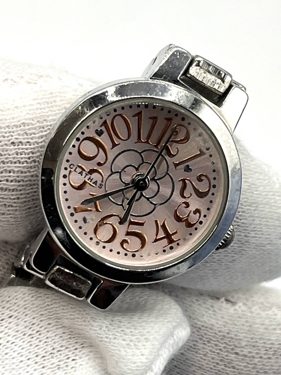 - 【電池切れ】CLATHAS クレイサス クォーツ 腕時計 ピンク文字盤 カメリア柄 ラウンド ケースシルバー レディース