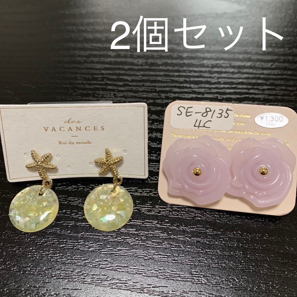 - ゆらゆら シェル入り ヒトデ パステル パープル ローズ ピアス ゴールド