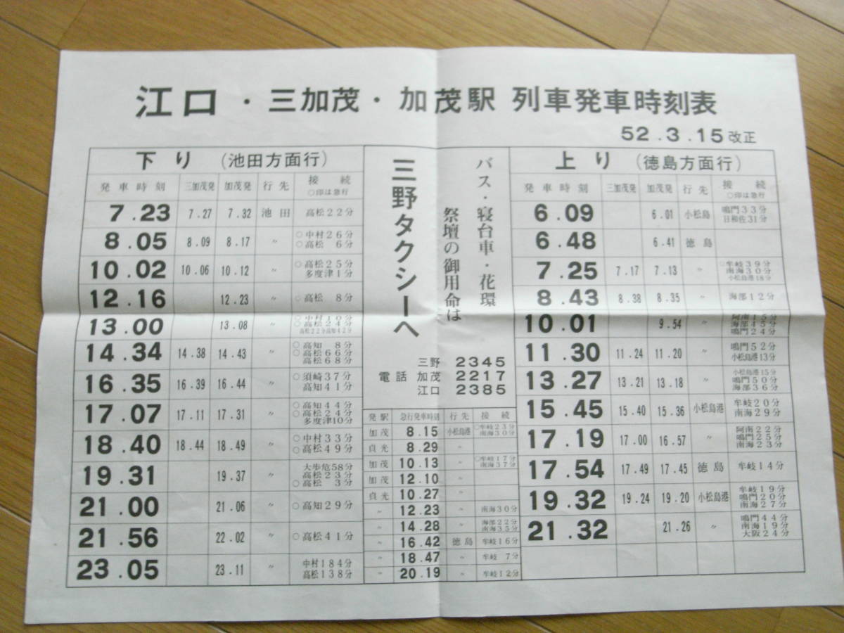 - 徳島本線 江口・三加茂・(阿波)加茂駅列車時刻表 昭和52年3月15日改正 みのタクシー