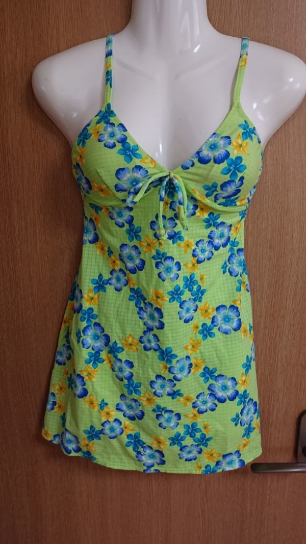 - ☆QUEEN FLORA ☆黄緑×花柄のワンピース水着2点セット☆M☆日本製☆高橋商事(株)☆クィーンフローラ☆