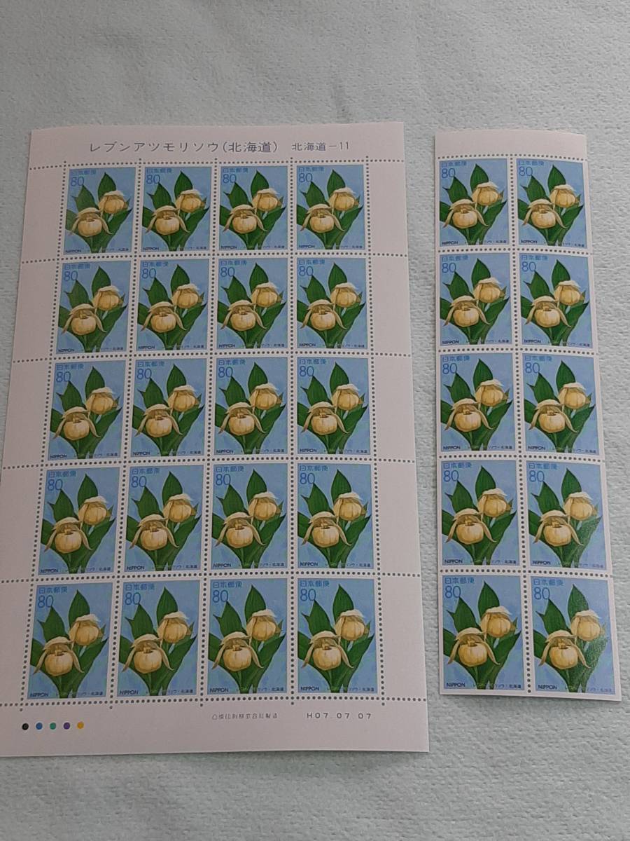 ふるさと切手 レブンアツモリソウ(北海道)北海道-11 H7 切手シート1枚と10枚シート