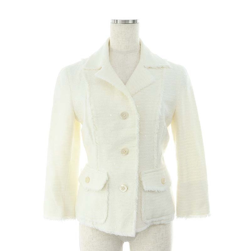 - エポカ EPOCA ツイードジャケット 背抜き フリンジ テーラード スパンコール 38 オフホワイト /DO ■OS レディース