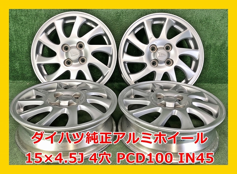 - ★15インチ ダイハツ 純正 中古 アルミホイール 4本 4穴 PCD:100 IN45★