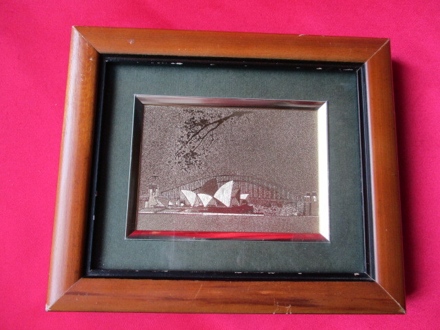 - シドニー オペラハウス 24Kt. Gold Leaf 額装 彫金アート 中古品