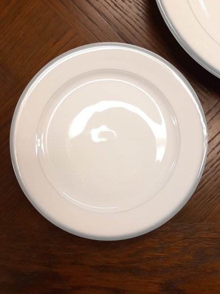 厚めのどっしりしたプレートに薄いブルーグレーのとても美しい色でトリムしてあり、大変上品なお品です。