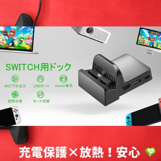> 【充電保護×放熱!安心】Switch テレビドッグ TVドッグ TV出力 Type-C USBポート 小型 4K 切り替え 充電スタンド SW3 便利 楽しさ倍層