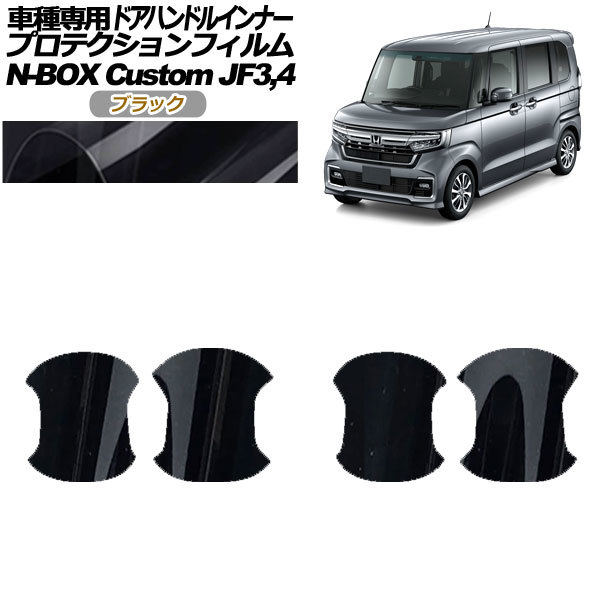 - プロテクションフィルム ドアハンドルインナー ホンダ N-BOXカスタム JF3,JF4 2020年12月~2023年09月 ブラック 入数:1セット(4枚)