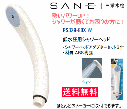 - 弱いシャワーの勢いをパワーアップ! 低水圧用シャワーヘッド 三栄水栓 PS329-80X-W
