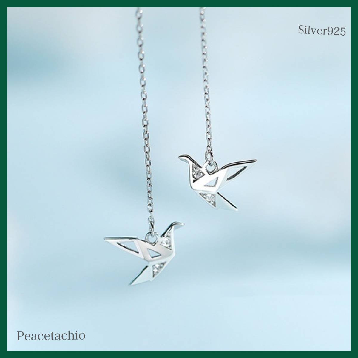 > ピアス Silver925 シルバー チェーン 鶴 折り鶴 アレルギー対応 プレゼント プチギフト 贈り物 収納ケース付