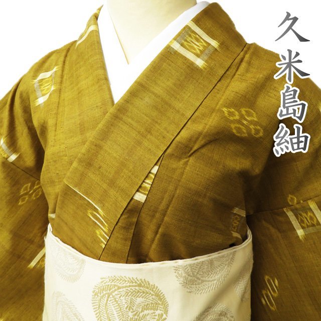 > 【FINAL PRICE】 久米島紬 着物 中古 正絹 袷 カジュアル 絣模様 桑茶色 身丈159cm 裄64.5cm M きもの北條 A862-8