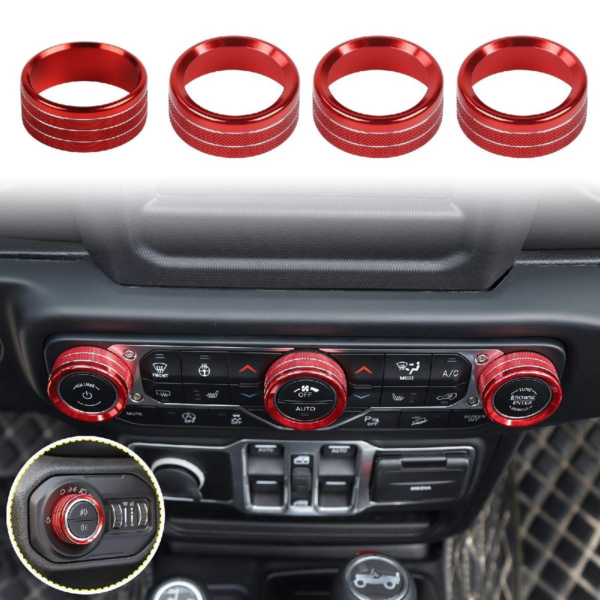 - デザイン性UP♪ レッド エアコン ダイヤル & ヘッドライトスイッチ カバー ラングラー アンリミテッド 4×e JL20L ルビコン 4P