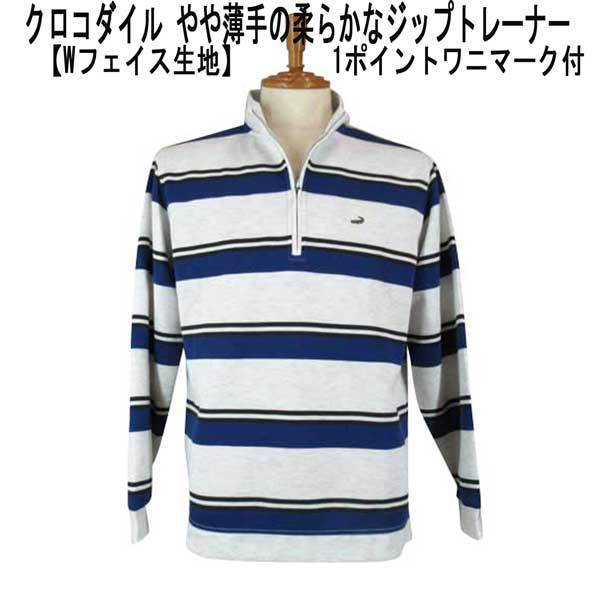 - 春クロコダイル ボーダー柄ジップトレーナー・Lグレーベース L