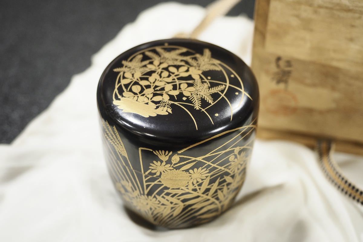 - 新品未使用 仁斎 「秋乃野」棗 茶道具 黒漆塗 金蒔絵 箱付き