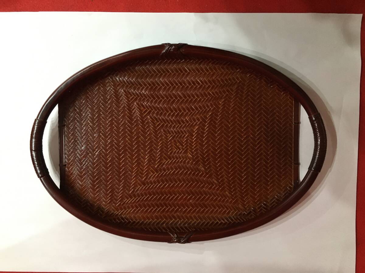 - 草竹 竹細工 うるし盆 美品 42cm 0625