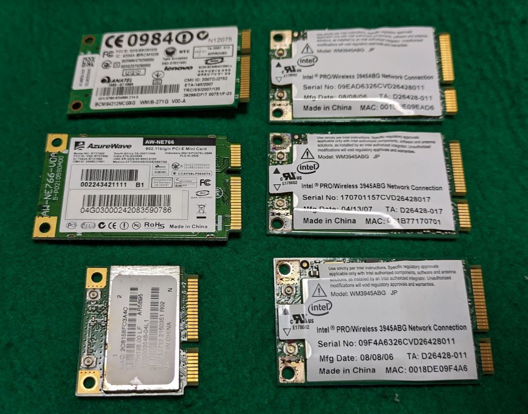 - 【中古・送料無料】6枚まとめて! 無線LAN intel 3945ABG (x3枚) Broadcom 4324a-brcm1028、AZUREWAVE AW-NE766 、ATH-AR5B95