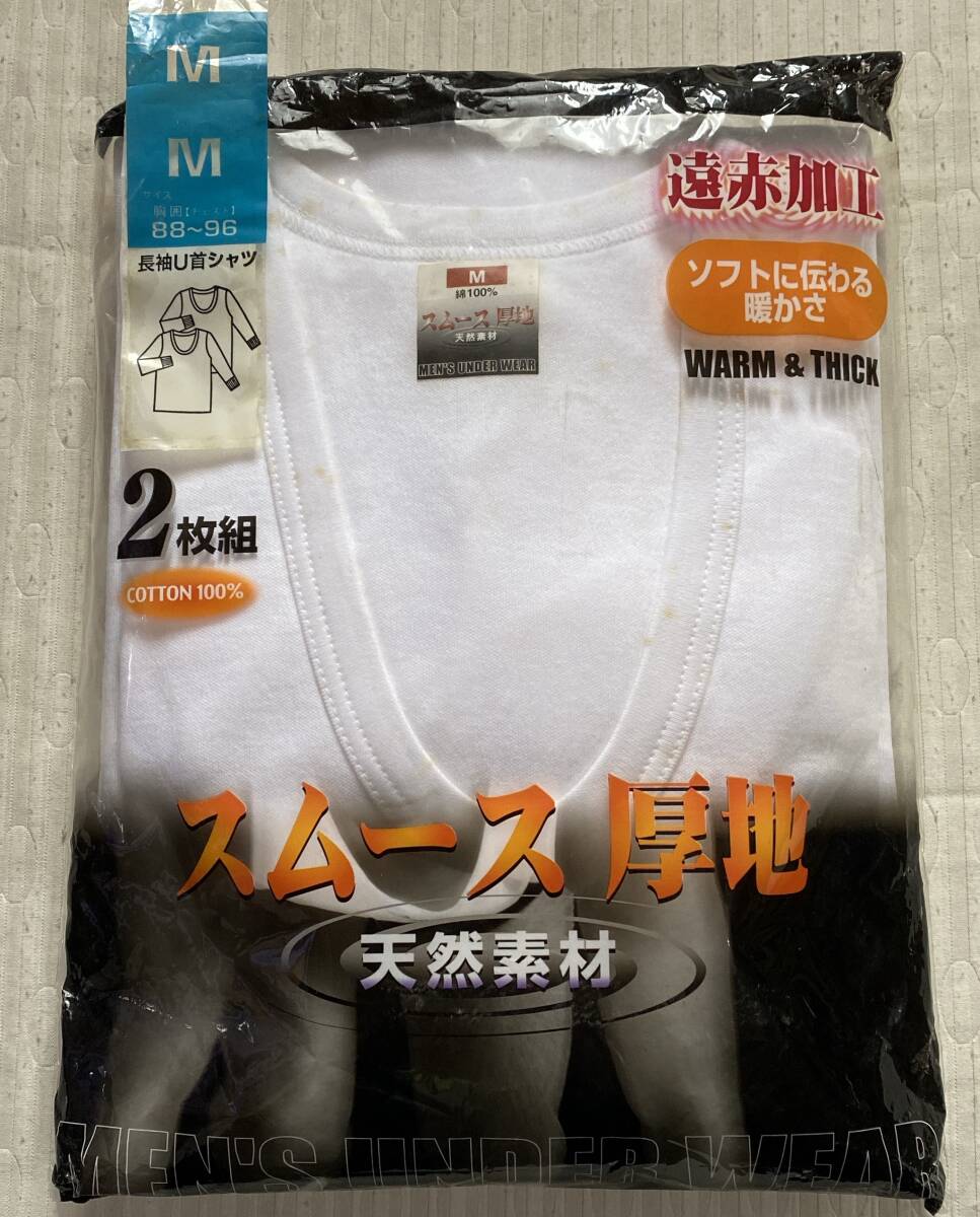 - アンダーシャツ 長袖U首シャツ 2枚 Mサイズ スムース厚地 綿100 遠赤外線加工▲▲未使用