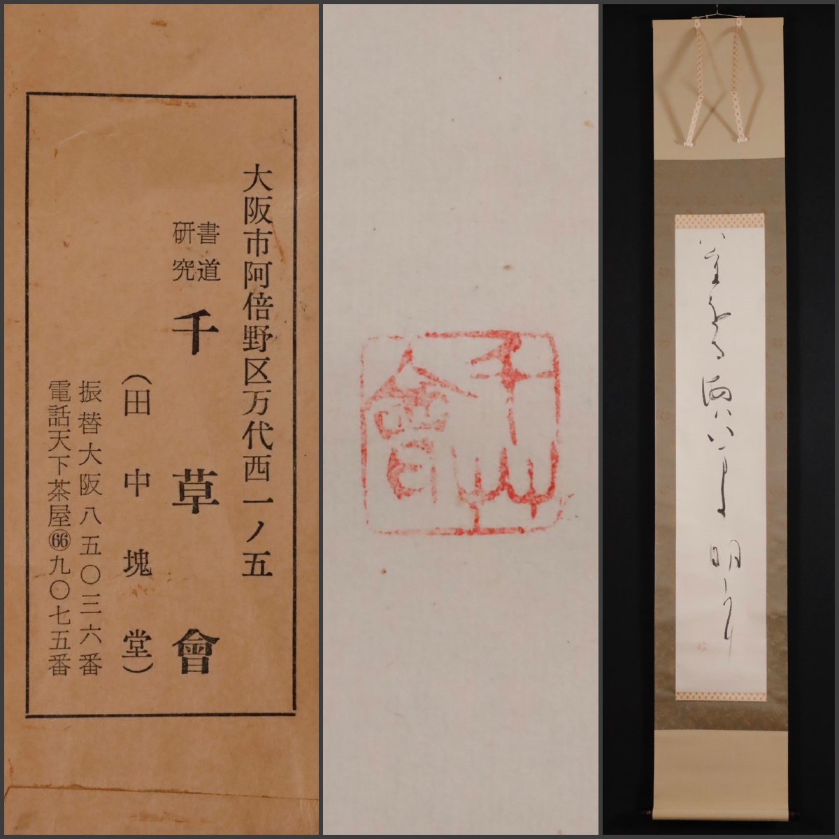 > 【模写】吉】10225 田中塊堂 千草会封筒付き 書 川谷尚亭師事 書家 古写経研究 岡山県の人 茶掛け 茶道具 掛軸 掛け軸 骨董品
