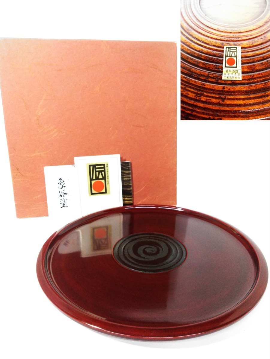 > 香川漆器 象谷 丸盆 漆芸 木製 伝統工芸品 象谷塗 後藤塗 (検索) 給仕 運び盆 茶器 茶道具 懐石 茶懐石 茶事 天然木 古道具 古玩 菓子器