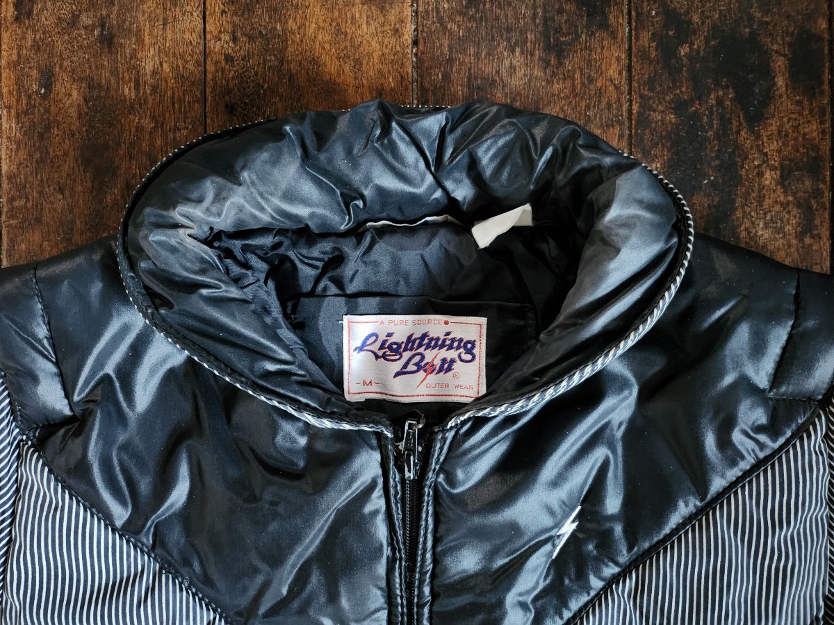 > ブラック ★ ライトニングボルト ダウン ジャケット ショール ビンテージ lightningbolt ハンテン オーシャンパシフィック オールド サーフ