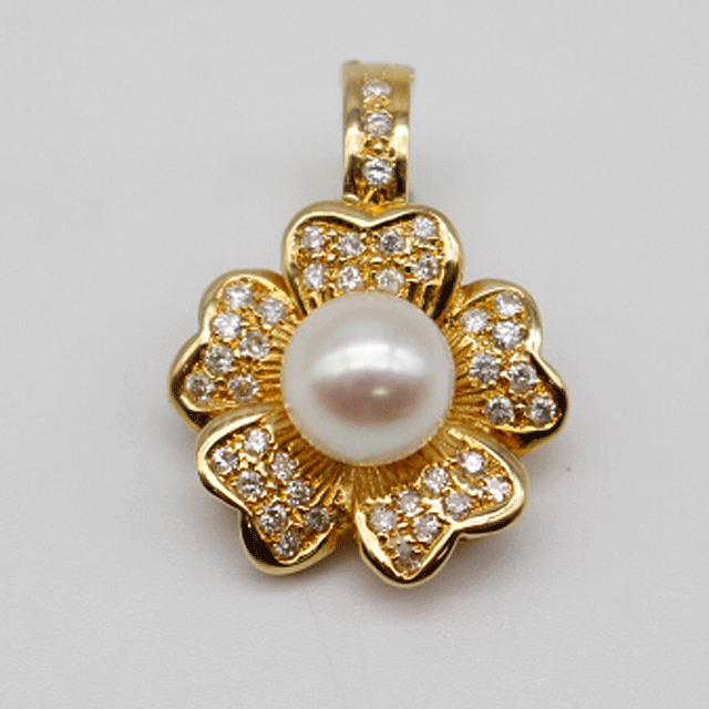 - あこや真珠ペンダント K18YG D:0.45ct 8mm 7g