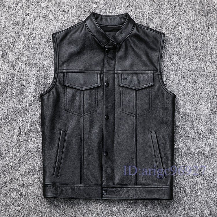 > S965☆新品ベスト メンズ バイクベスト カジュアルベスト ライダースベスト レザーベスト アウトドアベスト ジャケット おしゃれ ブラック