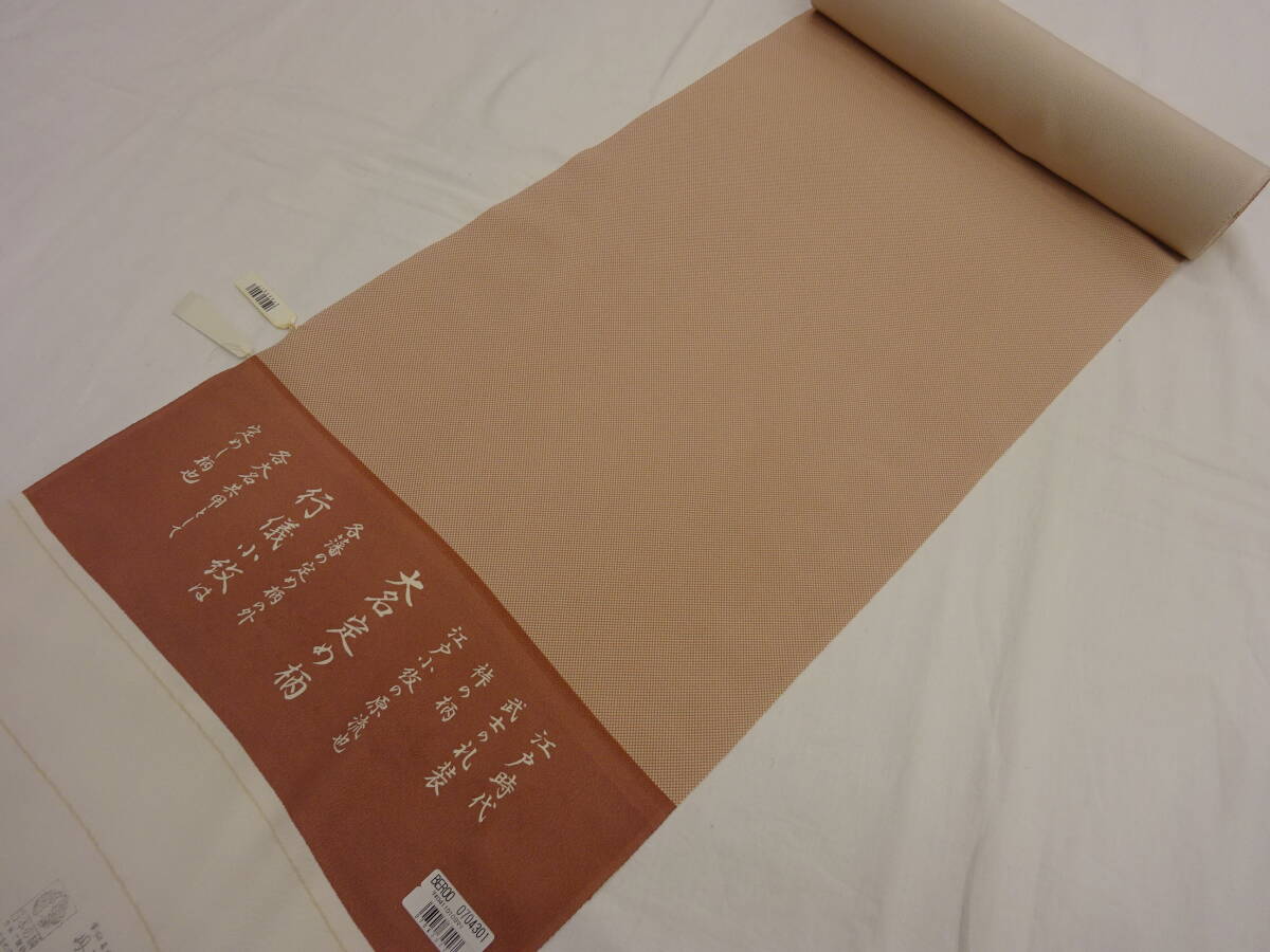 - 新品・正絹・反物★丹後ちりめん・江戸小紋着尺★薄茶色地に行儀小紋柄です