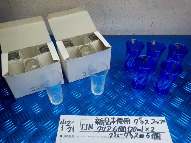 - TIN●○新品未使用 グラス コップ クリア 6個120ml×2 ブルーグラス5個 6-2/21(も)