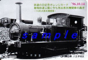 > JR東日本八王子地区オレンジカード(未使用)鉄道の日記念 青梅鉄道公園に今も残る蒸気機関車の轟き 110形式蒸気機関車