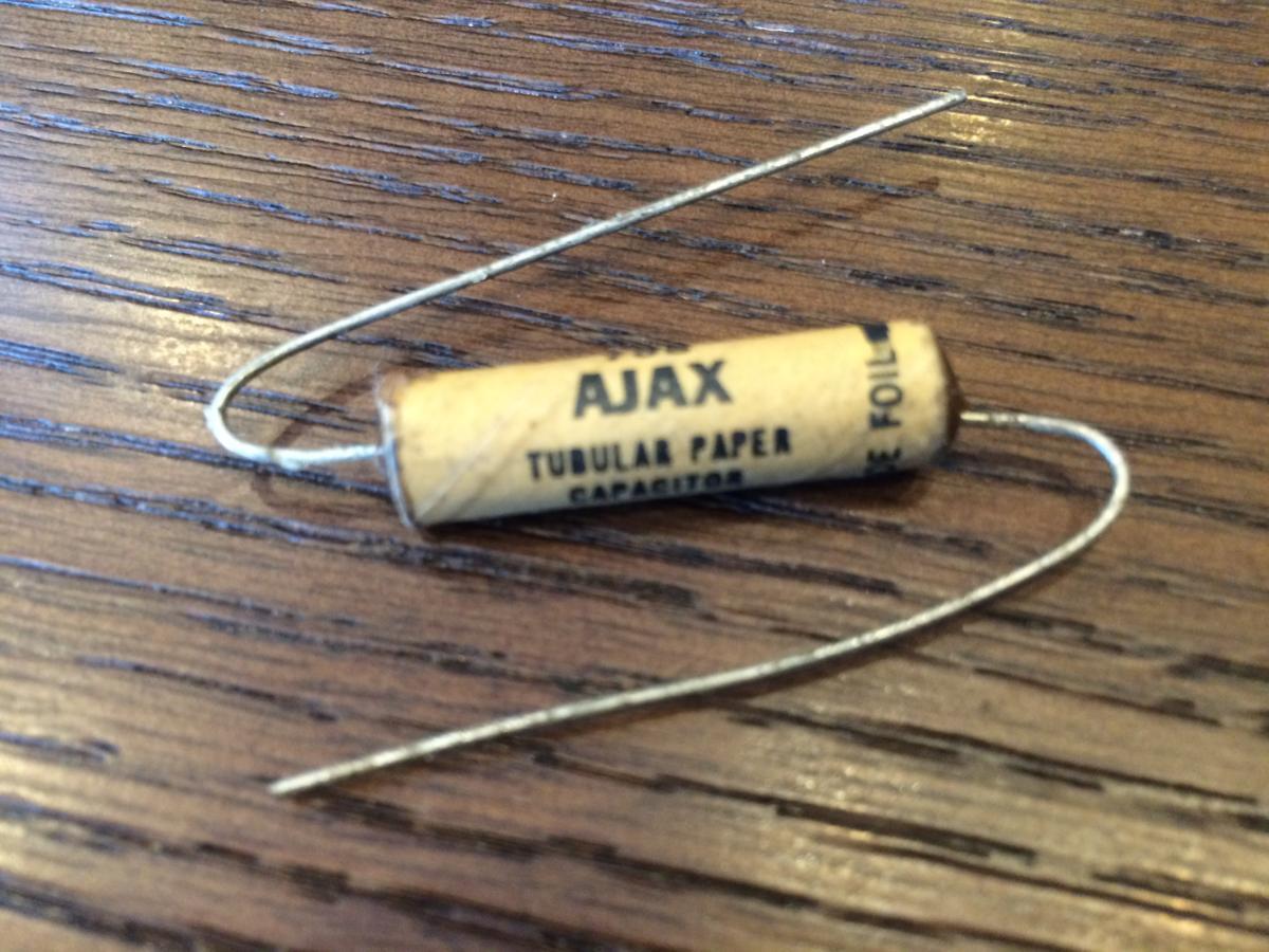 ビンテージ Ajax Wax コンデンサーです。ギターではハムのスタンダード数値、200vで枯れた音質、最適です。P90、またベースに人気のブランドです。その他電子部品向け。AjaxコンデンサーはFenderギター、アンプの純正部品に採用されるなど、良質な音で人気が高いブランドです。こちらのWaxタイプは最初期の物で最高峰の良質なコンデンサです。倍音豊かで深みがあり、レンジが広い良質なものです。Tigerと肩を並べることができる数少ないコンデンサで、世界的に数が少ない貴重なものです。大切にストックしておりましたが出品させて頂きます。----------------------------------------------------------------