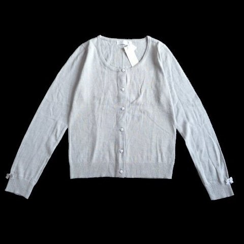 - 新品 PATTERN ハートボタン リボン ニット カーディガン グレー クルーネック セーター