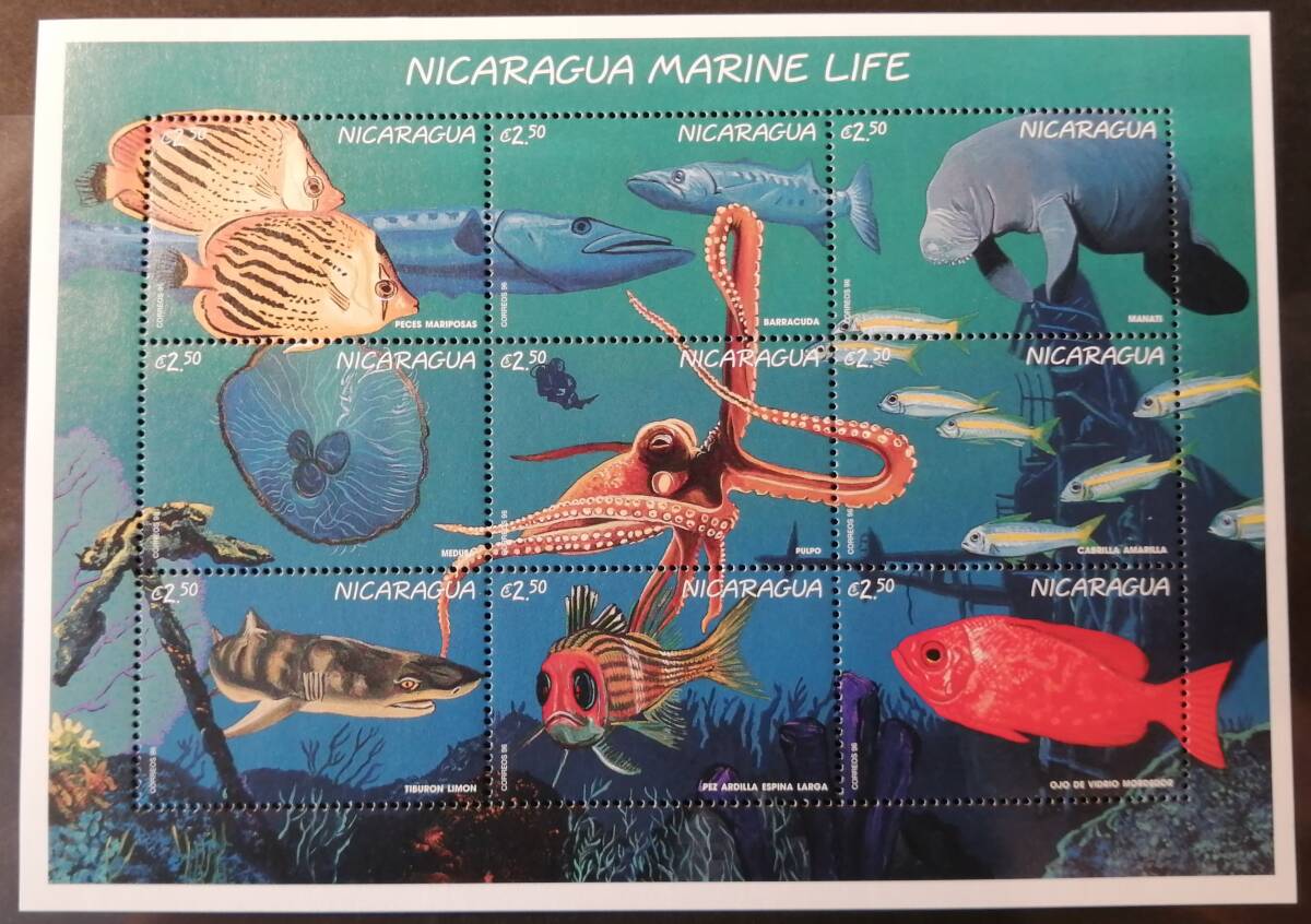 - ニカラグア 海洋生物(9種ミニシート) MNH