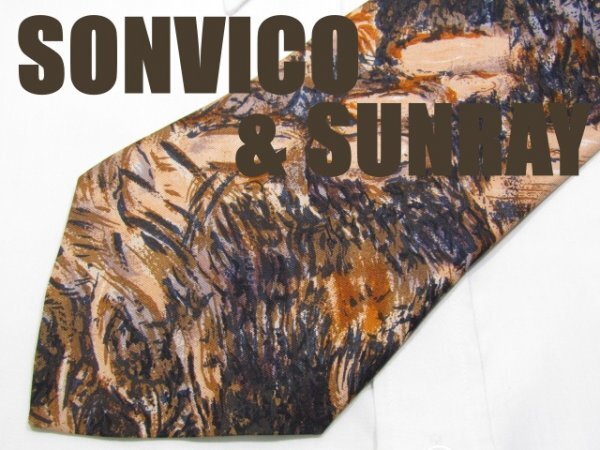 - 【絵画 名画】NA 204 【名画コレクション】クロードモネ SONVICO&SUNRAY ネクタイ 茶系 アート柄 プリント