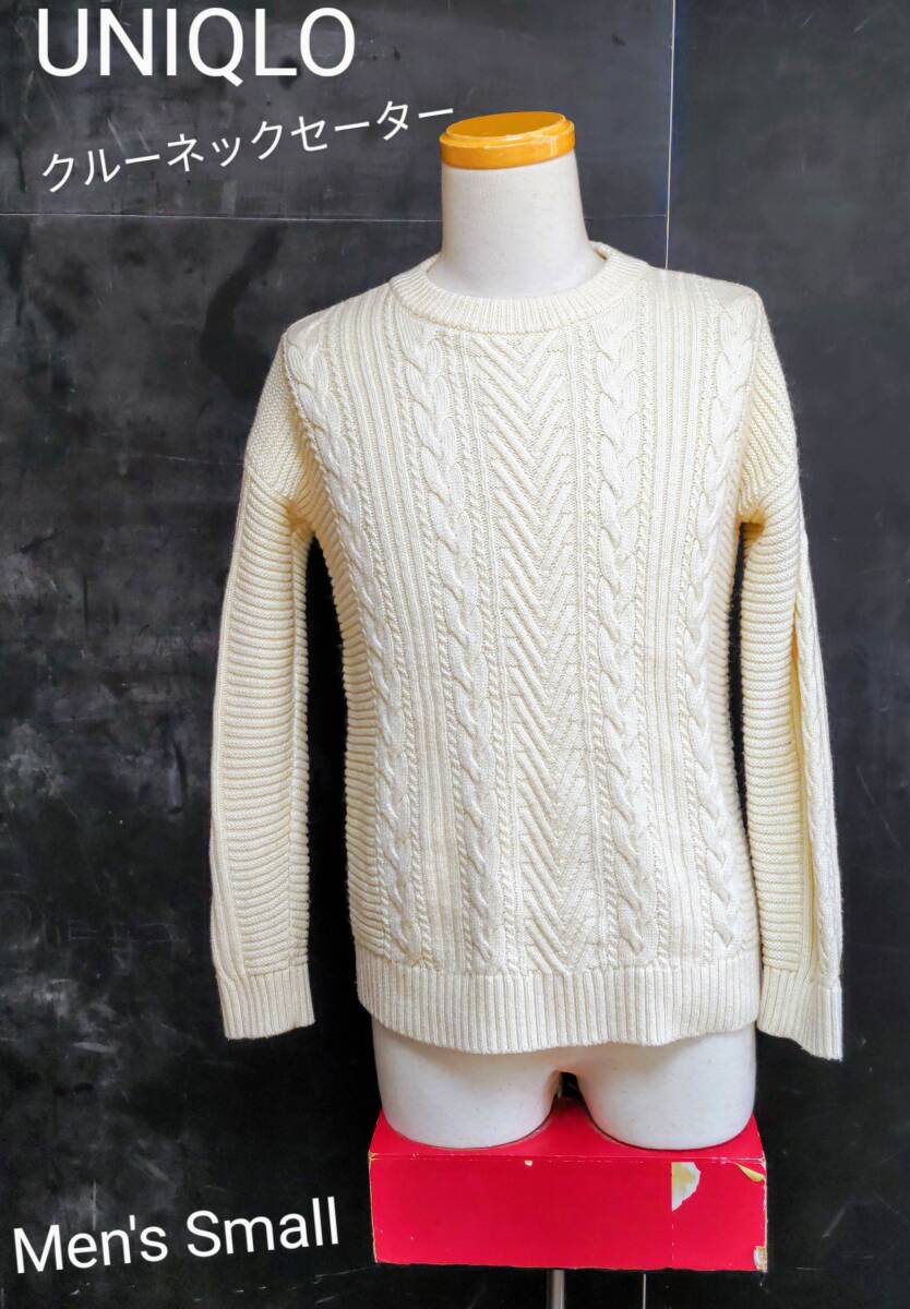 - ★送料無料★ UNIQLO ケーブルクルーネックセーター オフホワイト ユニクロ ニット セーター Small