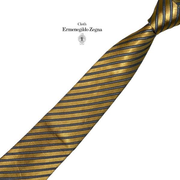 > ★やや細め★ Ermenegildo Zegna 高級ネクタイ ストライプ柄 ブラウン系 レジメンタル エルメネジルドゼニア メンズ服飾小物 中古 t778