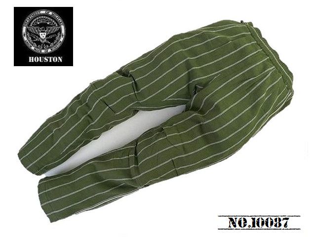 - 【送料無料 34%OFF】HOUSTON ヒューストン 綿&麻 ストライプ イージーパンツ NO.10087 OLIVE DRAD_XLサイズ(実寸75~90cm)