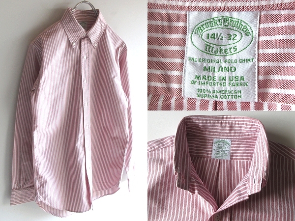 - USA製 Brooks Brothers ブルックスブラザーズ makers MILANO FIT ストライプ オックスフォード BDシャツ 14H-32 バーガンディ ネコポス対応
