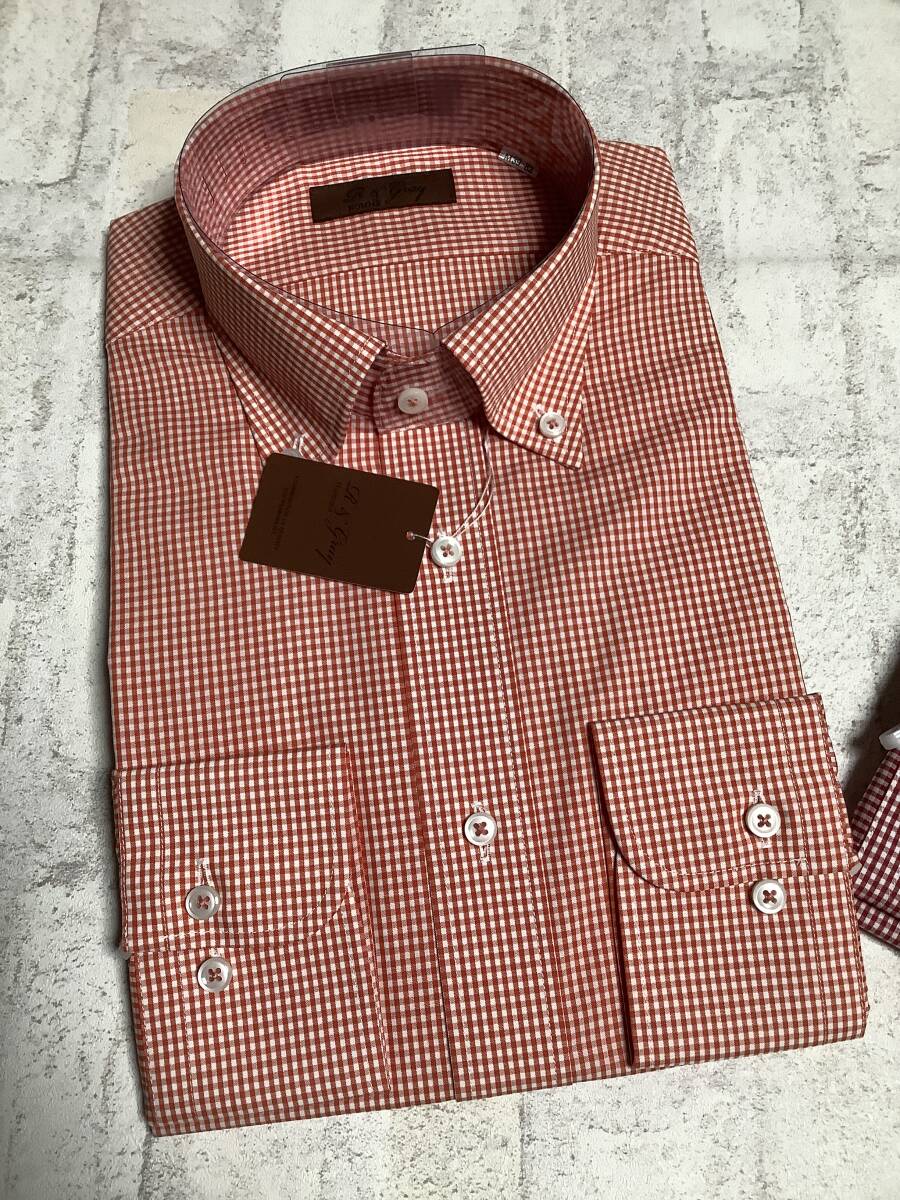 - 新品激安処分★39-82 表示 長袖Mサイズ 系 春のオレンジチェック生地 ボタンダウンシャツ★綿ポリドレスシャツ 形態安定