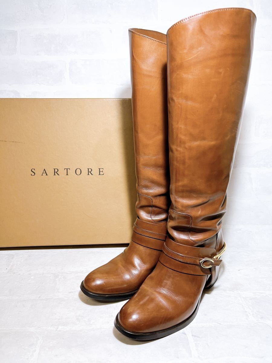 - 定価12万円【極美品】SARTORE サルトル 最高級 レザー ジョッキーブーツ 金具 ロング 茶 36(約23cm)イタリア製