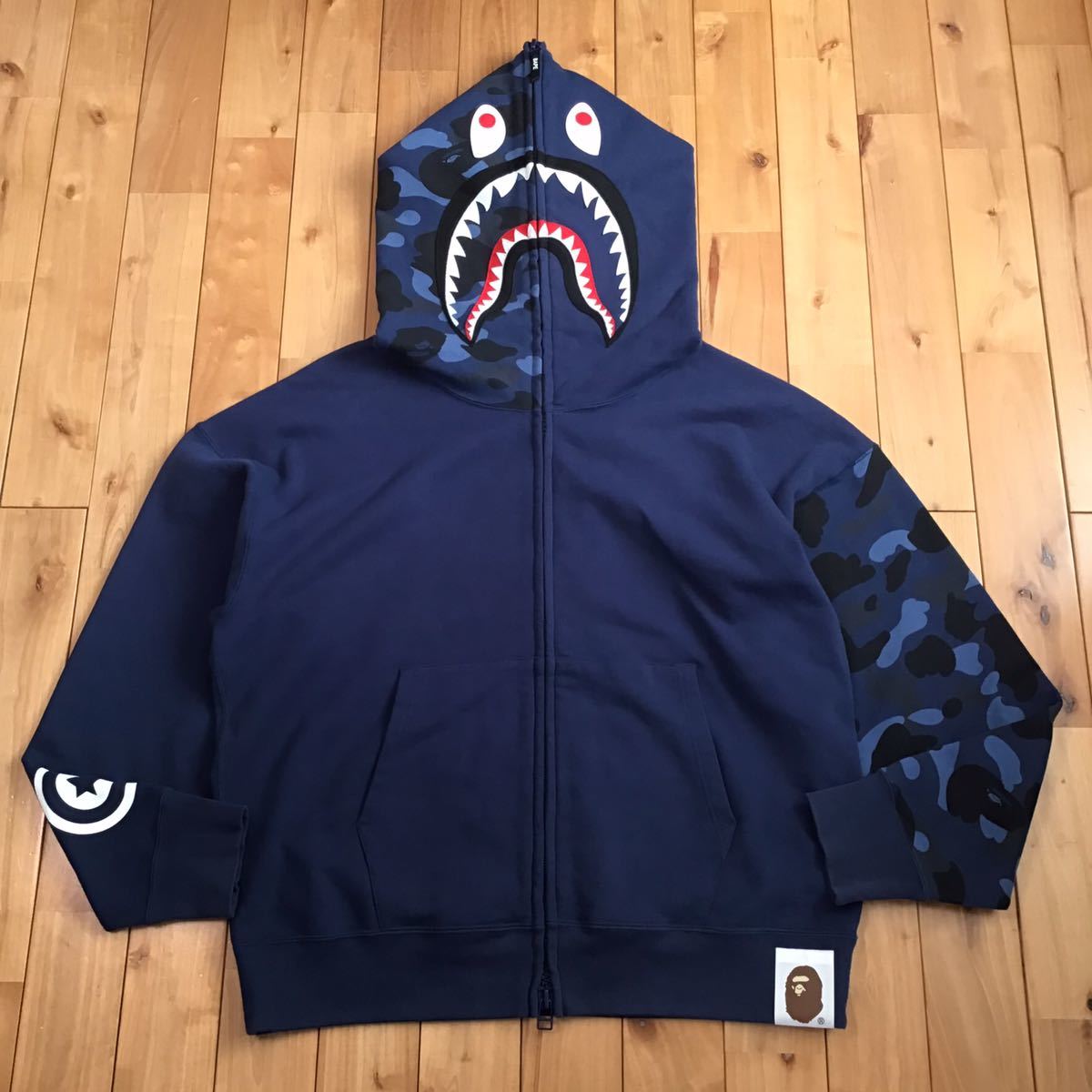 > Giant shark full zip hoodie Lサイズ a bathing ape BAPE Blue camo シャーク パーカー エイプ ベイプ アベイシングエイプ 迷彩 hi85