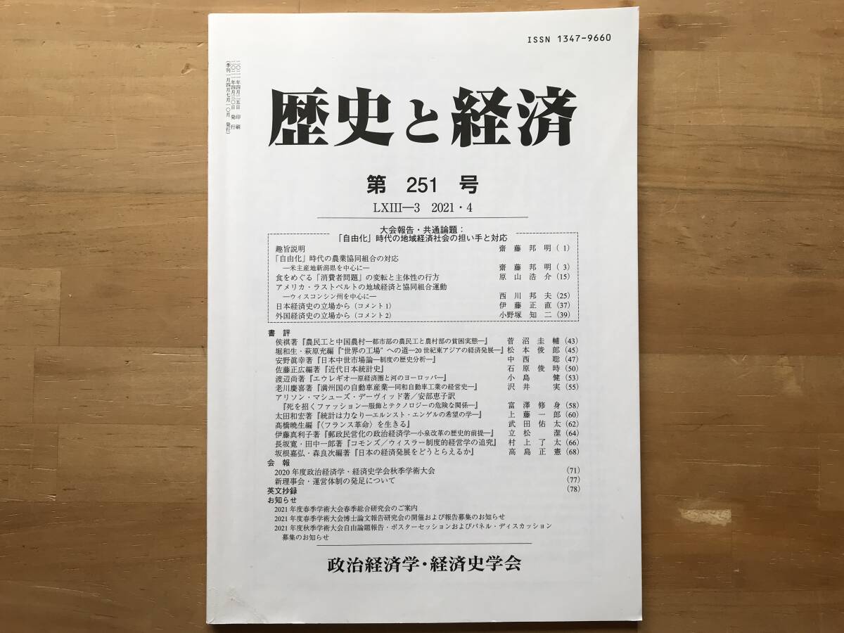 > 『歴史と経済 第251号 「自由化」時代の地域経済社会の担い手と対応 他』齋藤邦明・原山浩介 他 政治経済学・経済史学会 2021年刊 08991