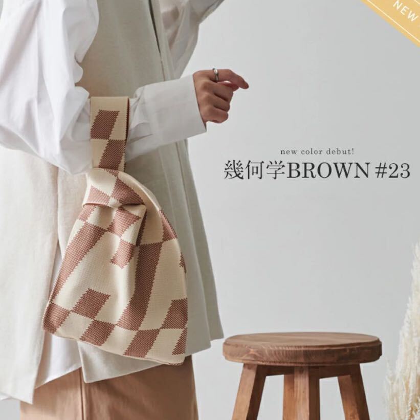 - スタイルオンバッグ クロシェ編み ニット トート バッグ 幾何学 ブラウン C