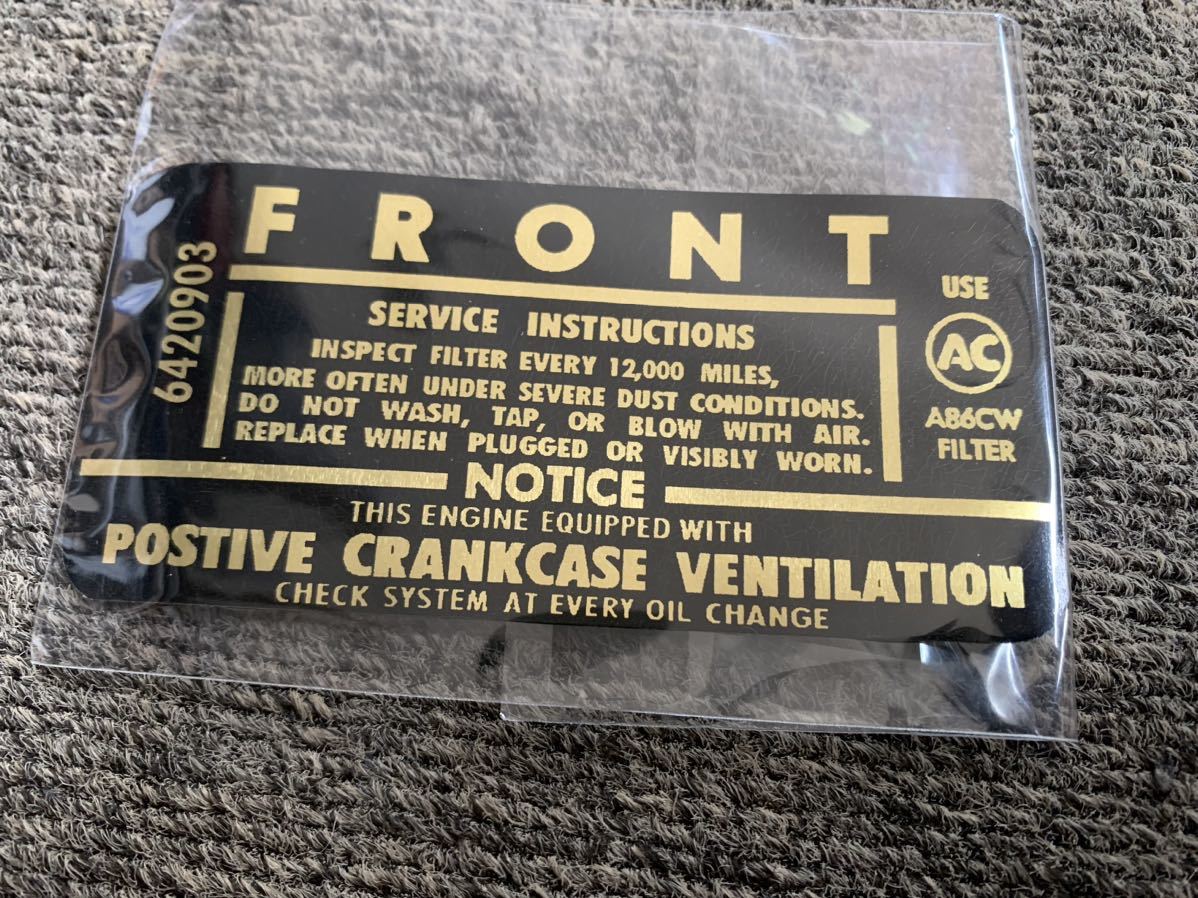 > インパラエアークリーナーサービスインストラクションデカール。ベルエア シボレー ローライダー ハイドロ GM シェベル