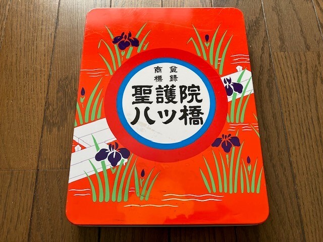 - 商標登録 聖護院 八ツ橋 創業元禄二年 空箱 空缶 横20.6cm 縦26.8cm 厚味3cm 292g 老舗 スチール 昭和 当時物 送料無料 底値