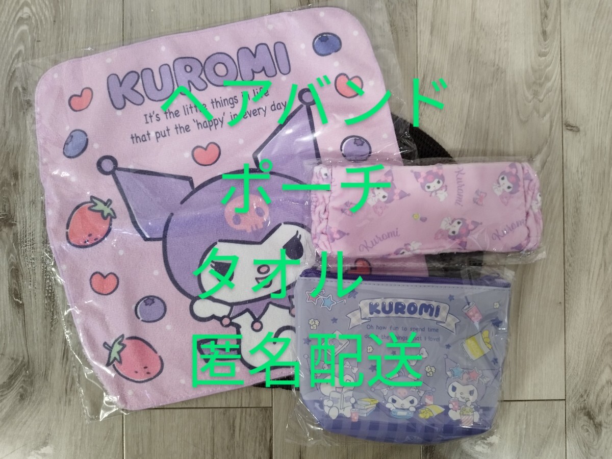 - 匿名配送】新品未使用 クロミ ポーチ ヘアバンド ハンドタオル 旅行に サンリオ ピンク パープル