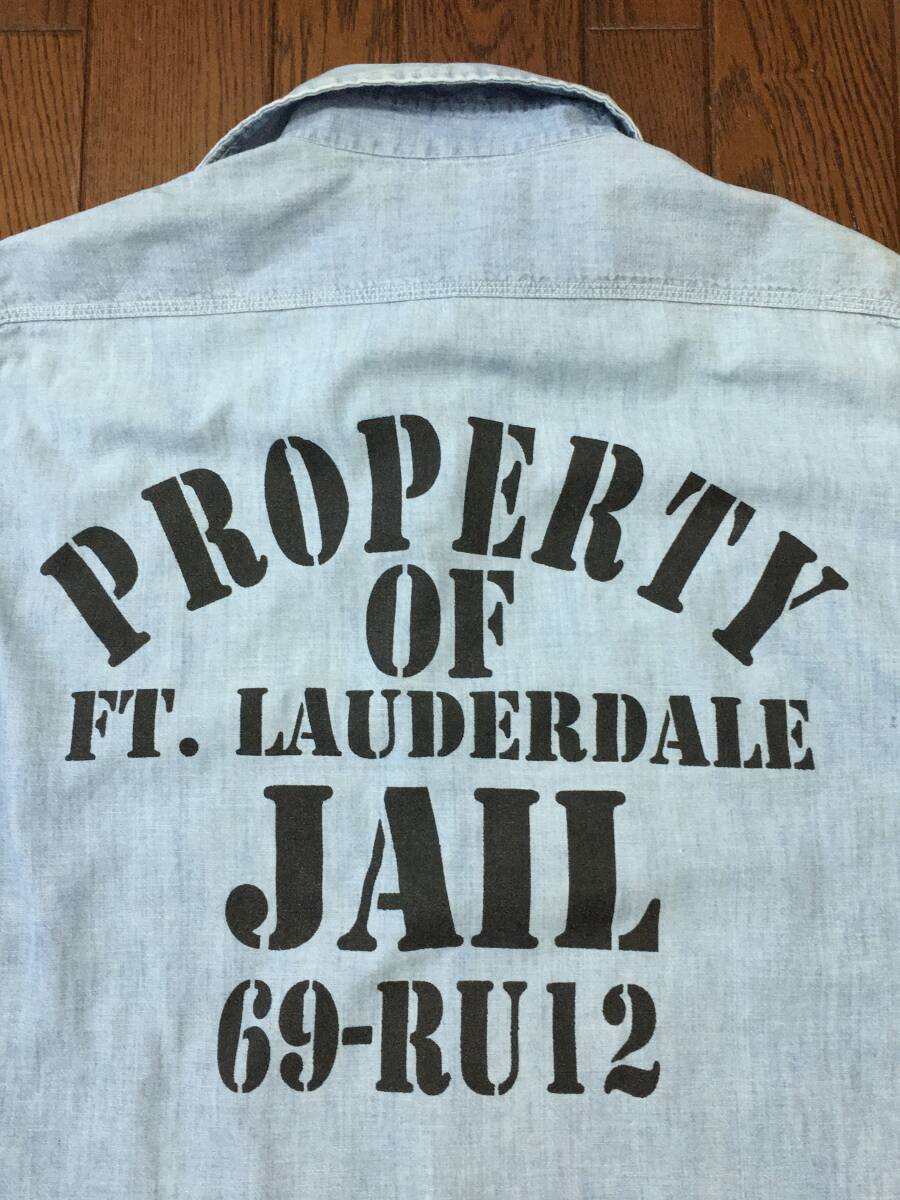 - JAIL プリント シアーズ Sears ビンテージ ブルー シャンブレーシャツ 検索 囚人 プリズナー ワーク