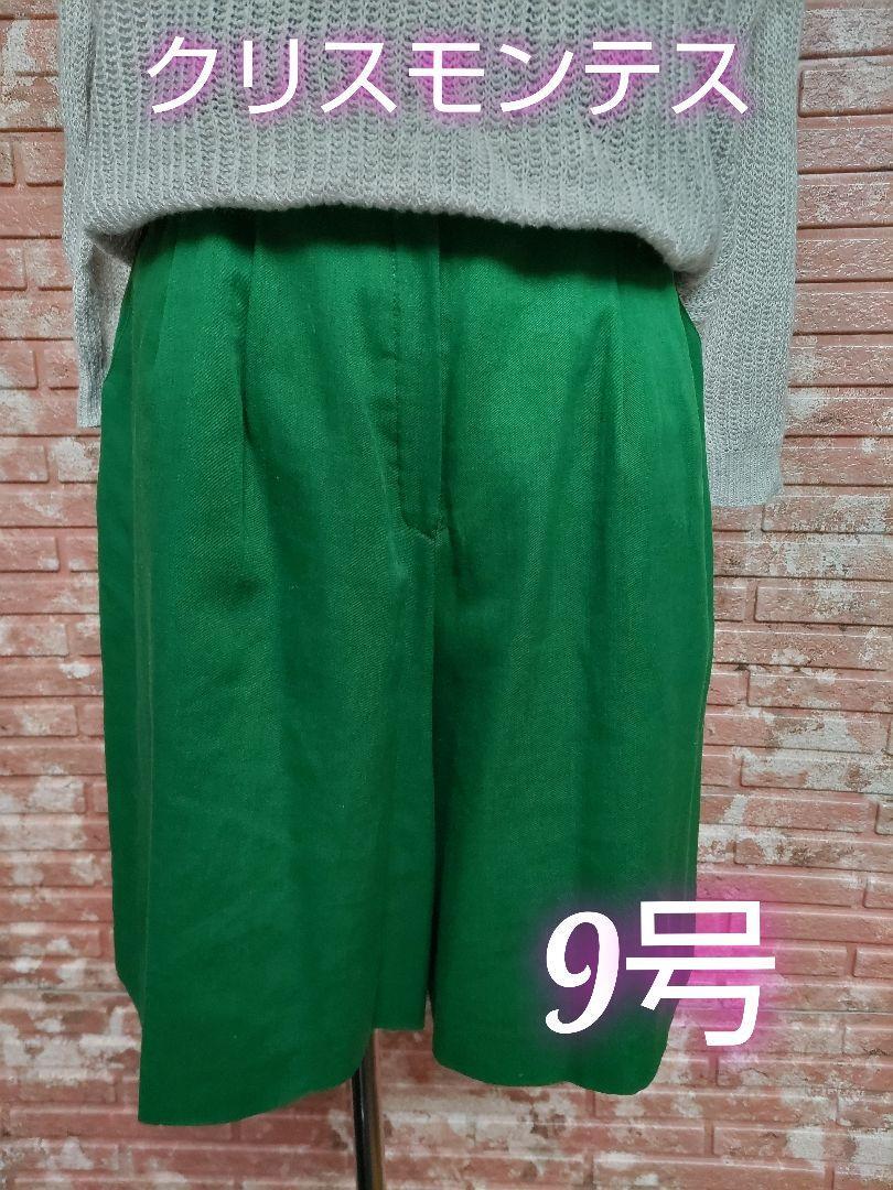 - クリスモンテス リネンブレンド キュロットパンツ グリーン 9号