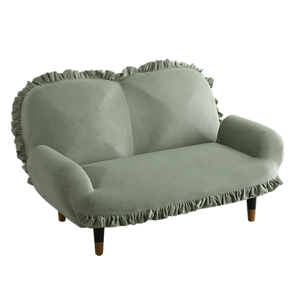 - 大人かわいいインテリア フリル付きベロアソファ 2人掛け 【Chammy -チャミー-】SH-07-OKBF-2-GEBK グリーン&ブラック