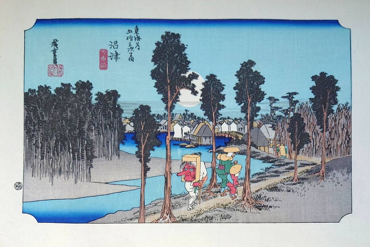 - f24040113〇古法純手摺彩色木版画 東海道五十三次 沼津宿 保永堂版 広重 複刻昭和年代 状態摺共良〇和本古書古文書