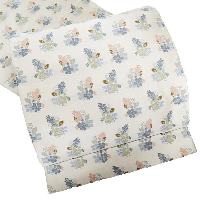 - 袋帯 中古 リサイクル 正絹 カジュアル 仕立て上がり 六通 葡萄模様 薄柳色 多色 きもの北條 A990-20
