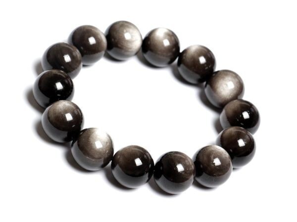 - [EasternStar] 海外発送 7A ダブルアイ シルバー オブシディアン ブレスレット 雙眼 銀曜石 Silver Obsidian 玉サイズ12mm